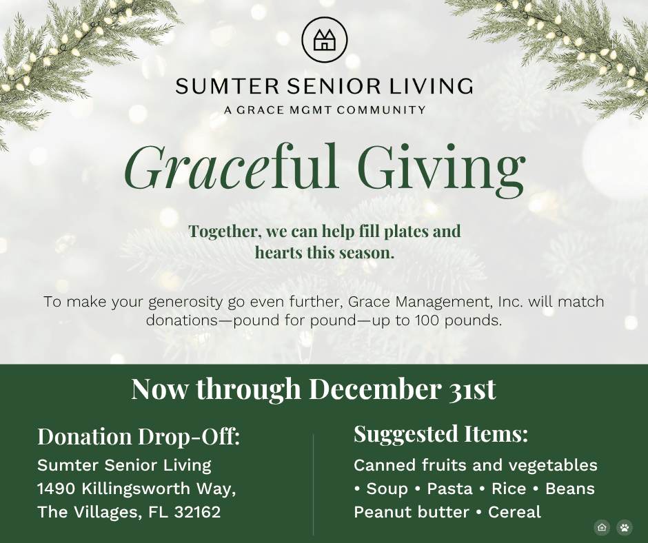 To make your generosity go even further, Grace Management, Inc. will match donations—pound for pound—up to 100 lbs! We can help fill plates and hearts this season through Graceful Giving.